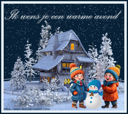 Fijne Avond Huis en Kinderen in de sneeuw