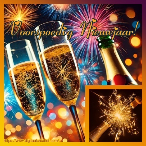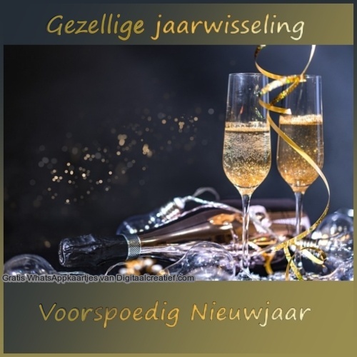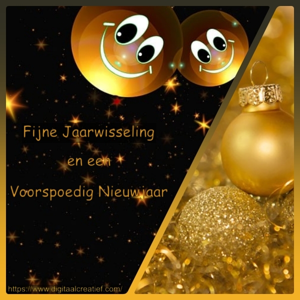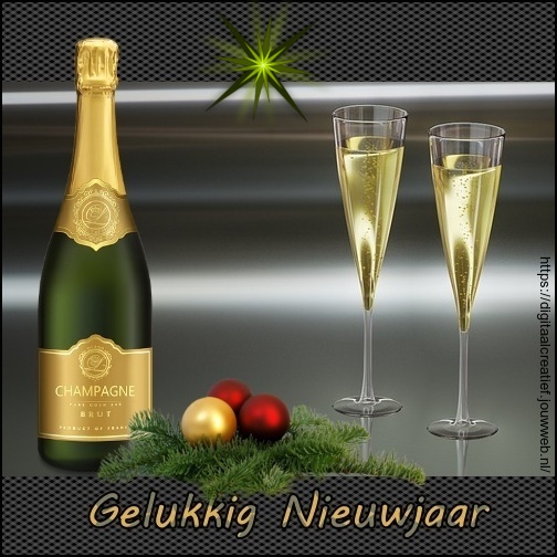 Kaart is bewerkt met afbeeldingen: champagnefles van:Monika Grafik glazen van MasterTux Kerstballen van: Willi Heidelbach via Pixabay